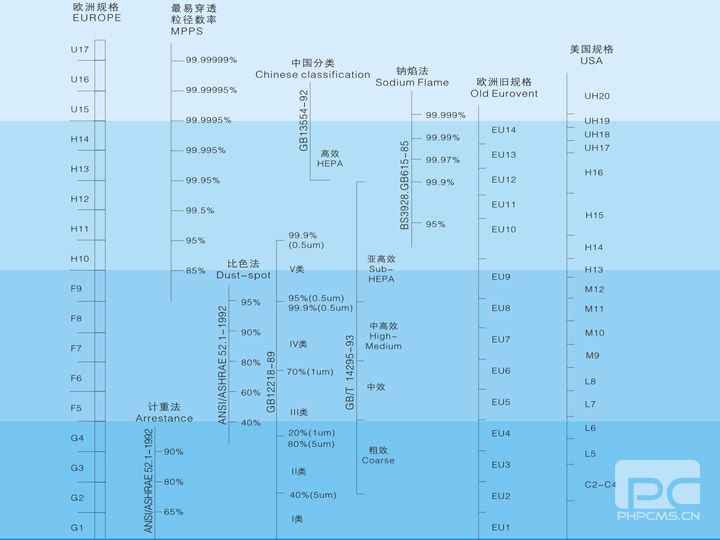 空氣過濾器效率規格對比 ![]() |