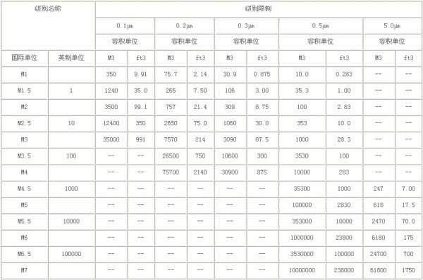 根據中華人民共和國國家標準GB 50073-2001(GBJ73—84 已作廢),《潔凈廠房設計規范》(下面簡稱《規范》)明確規定了空氣潔凈度的四個等級(潔凈度即指潔凈環境中空氣含塵粒多少的程度),并制作了相應表格以示劃分之標準: